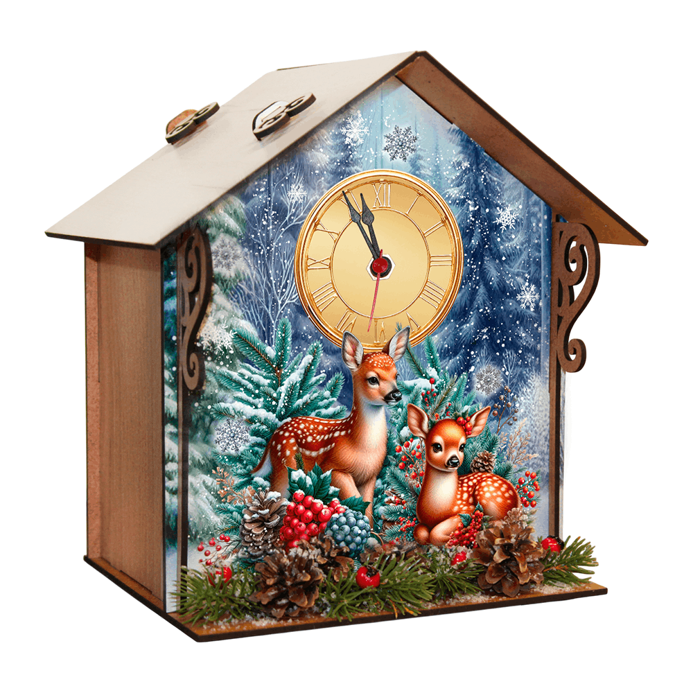 ДОМИК-ЧАСЫ ОЛЕНИ 800г ФАНЕРА